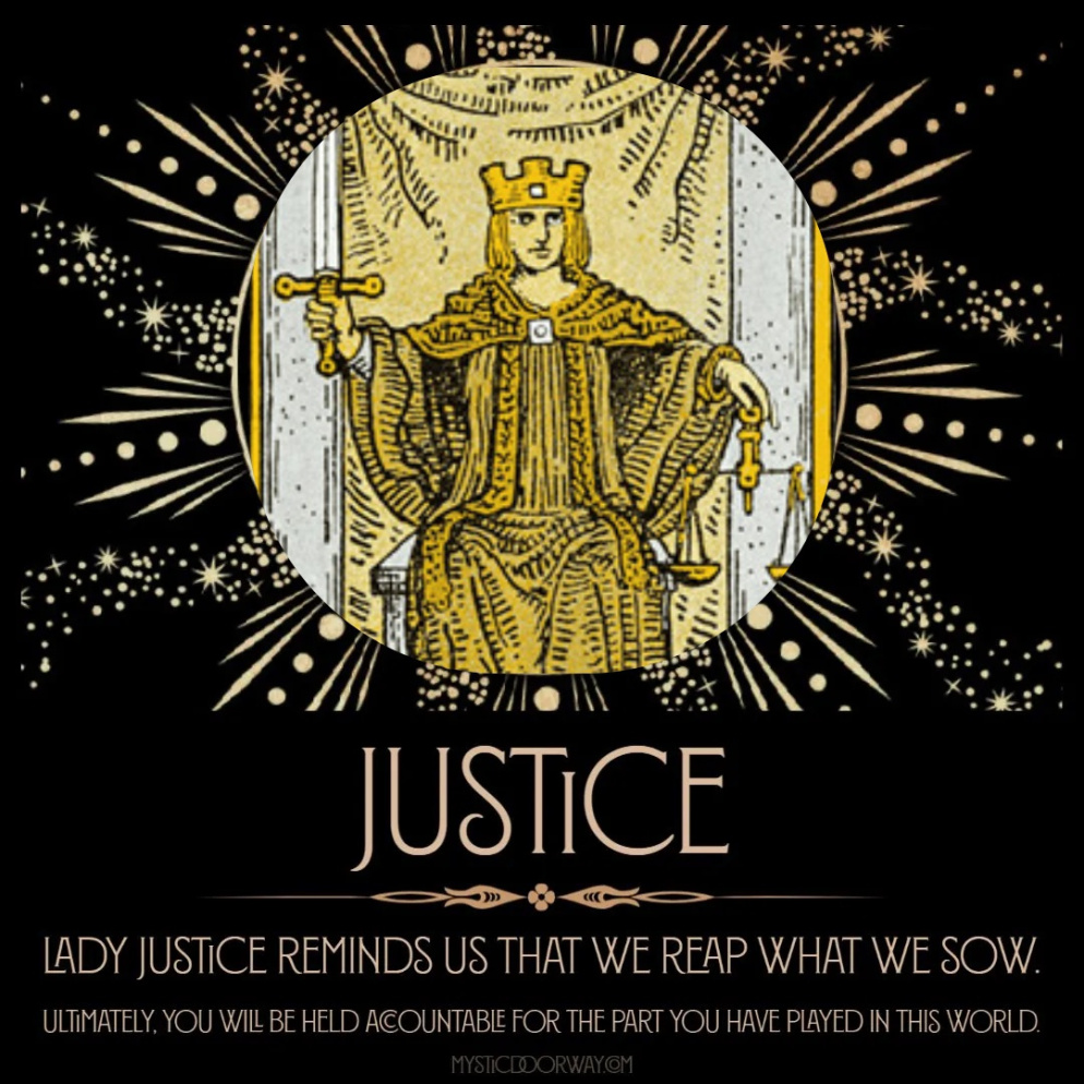Justice, XI(Natural Law) | Represents fairness, moral sensitivity, karma, and attention to detail. | |